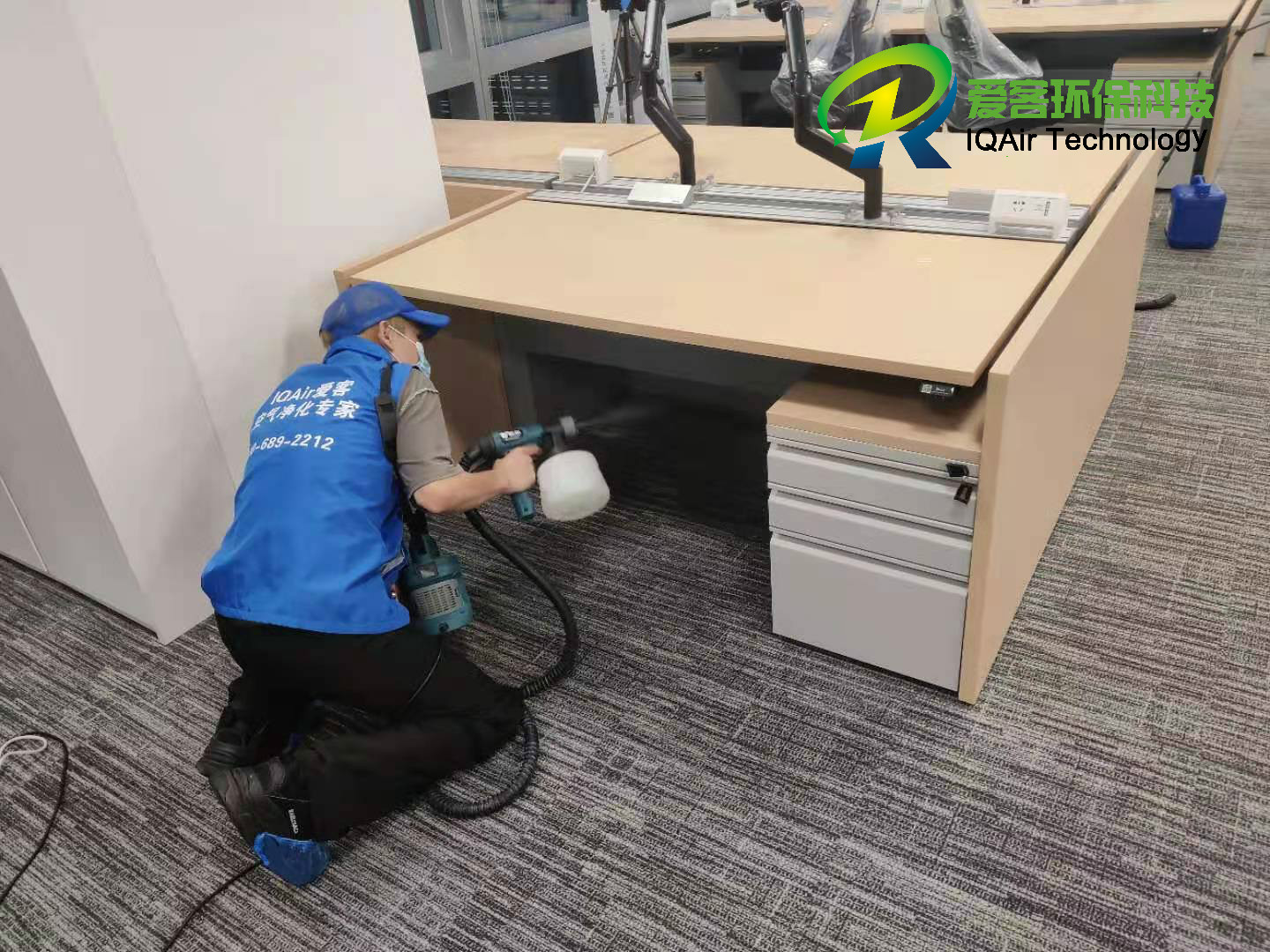 項目概況:本次項目是針對申請LEED認證的公司,進行的初期空氣治理。主要為項目單位區(qū)域內(nèi)的包括辦公室區(qū)域、獨立辦公室、會議室、茶水間、員工休息區(qū)、前臺以及其他區(qū)域的天花板、地面、墻面、辦公桌椅、儲物柜等多方位,使用愛洛客光觸媒360度無死角的噴涂。并選用(24組)Blueair空氣凈化機對所有區(qū)域的全覆蓋,達到持續(xù)凈化效果。