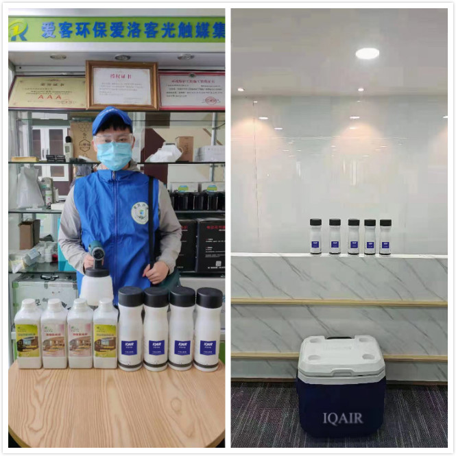 ⊙所用技術(shù):愛客環(huán)保(食品級)復(fù)合光觸媒、高分子生物酶、石墨烯吸附炭包