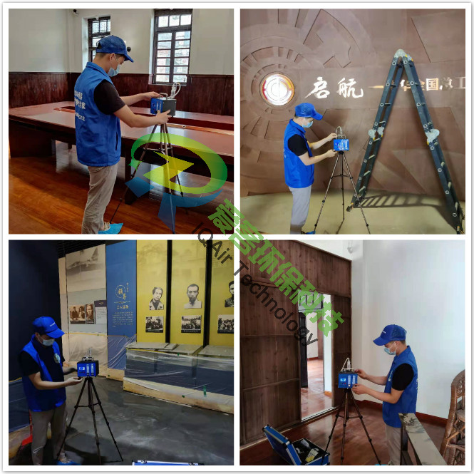 愛客工程師們對紀(jì)念館展區(qū)進(jìn)行室內(nèi)空氣取樣檢測