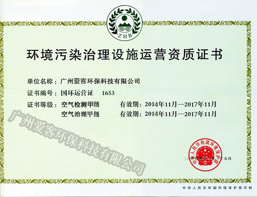環(huán)境污染治理設(shè)施運(yùn)營(yíng)資質(zhì)證書