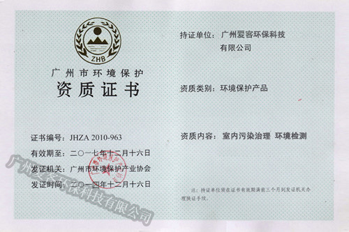 廣州市環(huán)境保護(hù)資質(zhì)證書