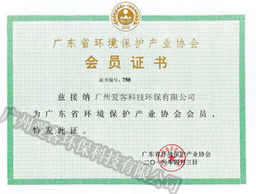 廣東省環(huán)境保護(hù)產(chǎn)業(yè)協(xié)會(huì)會(huì)員證書(shū)