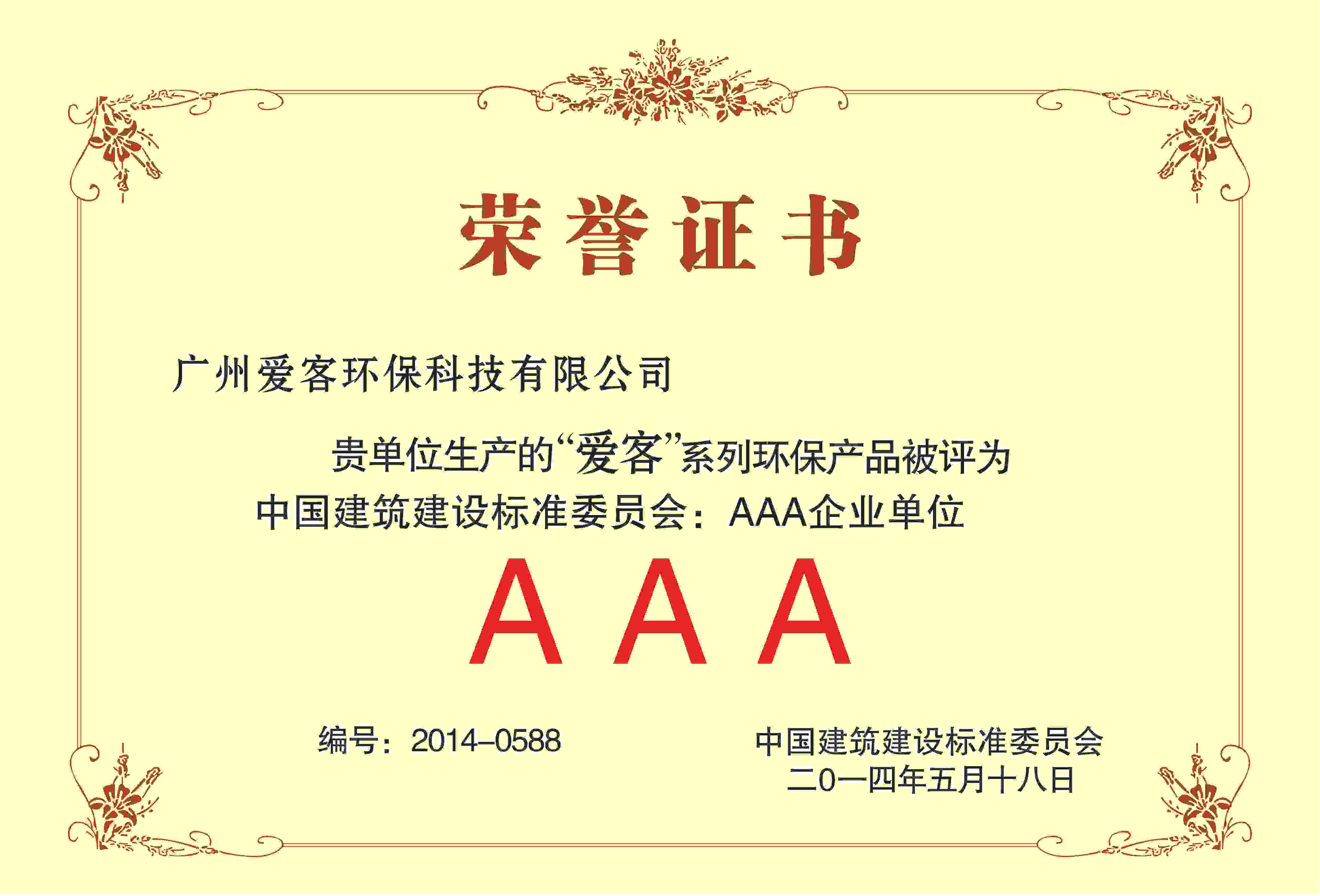 AAA級企業(yè)單位榮譽(yù)證書