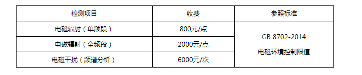 電磁輻射檢測(cè)收費(fèi)標(biāo)準(zhǔn)